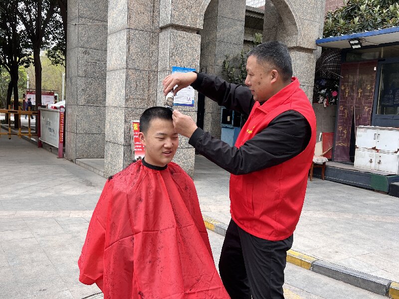活動(dòng)現(xiàn)場,同樣受居民熱捧的理發(fā)區(qū)也忙得不可開交。老人、小孩絡(luò)繹不絕。“師傅,這發(fā)型剪得精神!”“比我去理發(fā)店剪的還細(xì)致!”……一上午的時(shí)間,志愿者查道紅自拿起手中的推刀,便一刻沒有停歇過,在他嫻熟的操作中,16位居民面貌煥然一新。