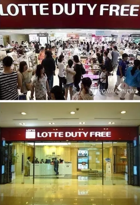 與昔日的擠破頭瘋搶不同,現(xiàn)在的樂天免稅店空空如也。