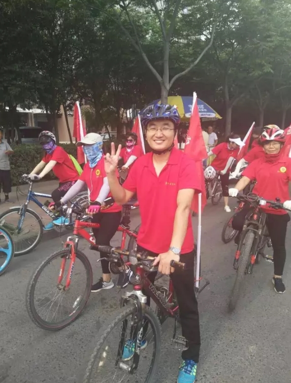陽(yáng)光騎行隊(duì)的隊(duì)員們都是利用業(yè)余時(shí)間進(jìn)行騎行,為了不影響正常的工作,他們每天會(huì)根據(jù)各自的工作情況進(jìn)行適當(dāng)調(diào)整。而隊(duì)伍中一直有幾位“堅(jiān)守隊(duì)員”,他們克服各種困難,不僅每天參加騎行,還自覺(jué)承擔(dān)起為大家服務(wù)的責(zé)任。三樓的楊振興,每日為騎行隊(duì)制定騎行線路,路線精確到每個(gè)轉(zhuǎn)彎路口的修整點(diǎn);四樓的李東生,是一位騎行愛(ài)好者,也是隊(duì)員中最年長(zhǎng)的一位。他在騎行的行進(jìn)隊(duì)伍中主動(dòng)承擔(dān)起行進(jìn)管理工作,時(shí)刻堅(jiān)守在隊(duì)伍的最后位置,確保整個(gè)騎行隊(duì)伍的安全;每一位騎行隊(duì)員都自覺(jué)服從隊(duì)內(nèi)安排,一切行動(dòng)聽(tīng)指揮,嚴(yán)格按照每次既定的要求完成騎行任務(wù)……