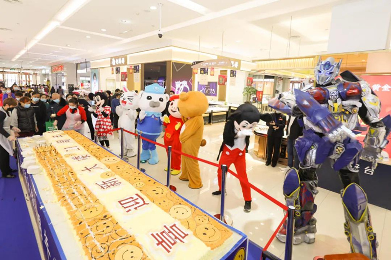 10月29日,在員工、顧客的翹首期盼中,商場迎來了新大樓開業(yè)21周年慶。這一天,廣場上中州大鼓震天響、拱門氣柱迎風(fēng)挺立,多個品牌、品類鉅惠來襲;商場內(nèi)如同歡樂海洋,巨型甜蜜蛋糕與民分享,變形金剛、米奇米妮、豬豬俠等眾多卡通寶貝現(xiàn)場助興。他們個個靈動活潑的伴隨著音樂節(jié)奏翩翩起舞,親切熱情地與顧客互動,在場的人都被他們的快樂深深感染。還有快樂刮獎、蛋糕DIY、超市限時特惠、刷卡有禮等多重多樣的購物體驗,讓顧客樂在其中、開心享購。