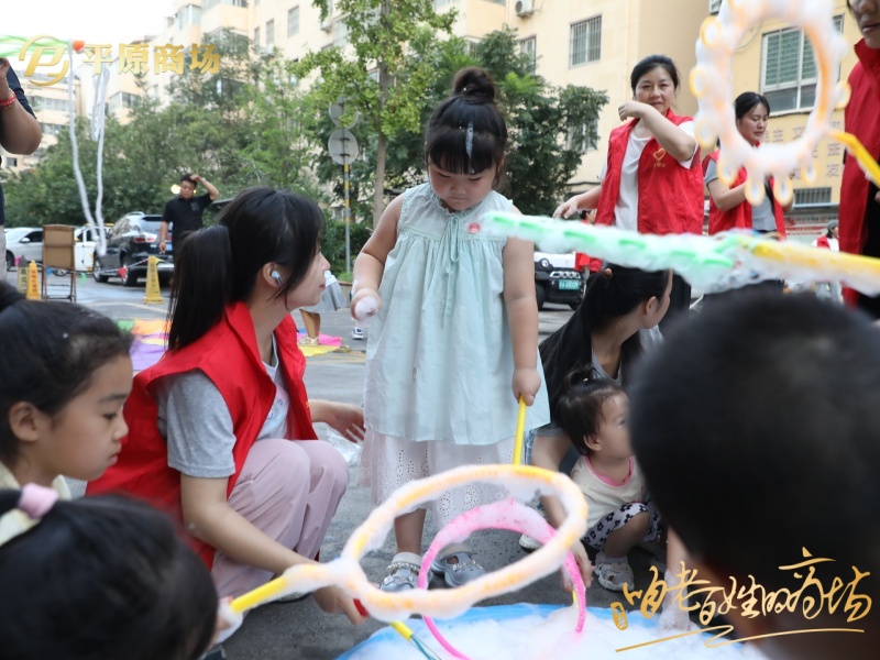 當(dāng)晚7時(shí),活動(dòng)一開(kāi)始便點(diǎn)燃了小區(qū)廣場(chǎng)的熱情。彩虹傘展開(kāi)的一瞬間便成為全場(chǎng)焦點(diǎn),孩子們興奮地簇?fù)矶?。清涼刺激?ldquo;水炸彈大戰(zhàn)”與如夢(mèng)似幻的“魔法泡泡”體驗(yàn)區(qū)成為了最火爆的親子樂(lè)園。小朋友們開(kāi)心地追趕嬉戲,玩得不亦樂(lè)乎;家長(zhǎng)們或參與其中,或駐足拍照;志愿者灌注的“水炸彈”更是供不應(yīng)求,忙忙碌碌間,頭頂?shù)暮怪楹蜑R濕的衣服混為一體,但看著孩子們純真的笑臉和興奮勁兒,他們便繼續(xù)彎腰灌注“水彈”,還開(kāi)玩笑地說(shuō):“自己也是過(guò)童年了,把水一次玩夠。”